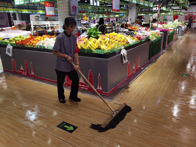 農業(yè)公司安全小組人員立即啟動防汛安全應急預案,對市場易積水點、漏水點、排水口進行檢查清理,做到積水及時排放,防止下水口堵塞、雨水積存,并鋪防水腳踏墊,全天候清掃保潔,豎立標識,引導市場商戶、購物群眾注意防滑安全。對容易出現水電火災的插排、線路、交換點等進行防水處理,防止火災、觸電現象發(fā)生,及時發(fā)布災害預警信息和防災避災辦法到市場商戶群,督促各商戶從業(yè)者積極做好氣象災害預防工作,做好市場必需品供應,保障惡劣天氣物價穩(wěn)定。